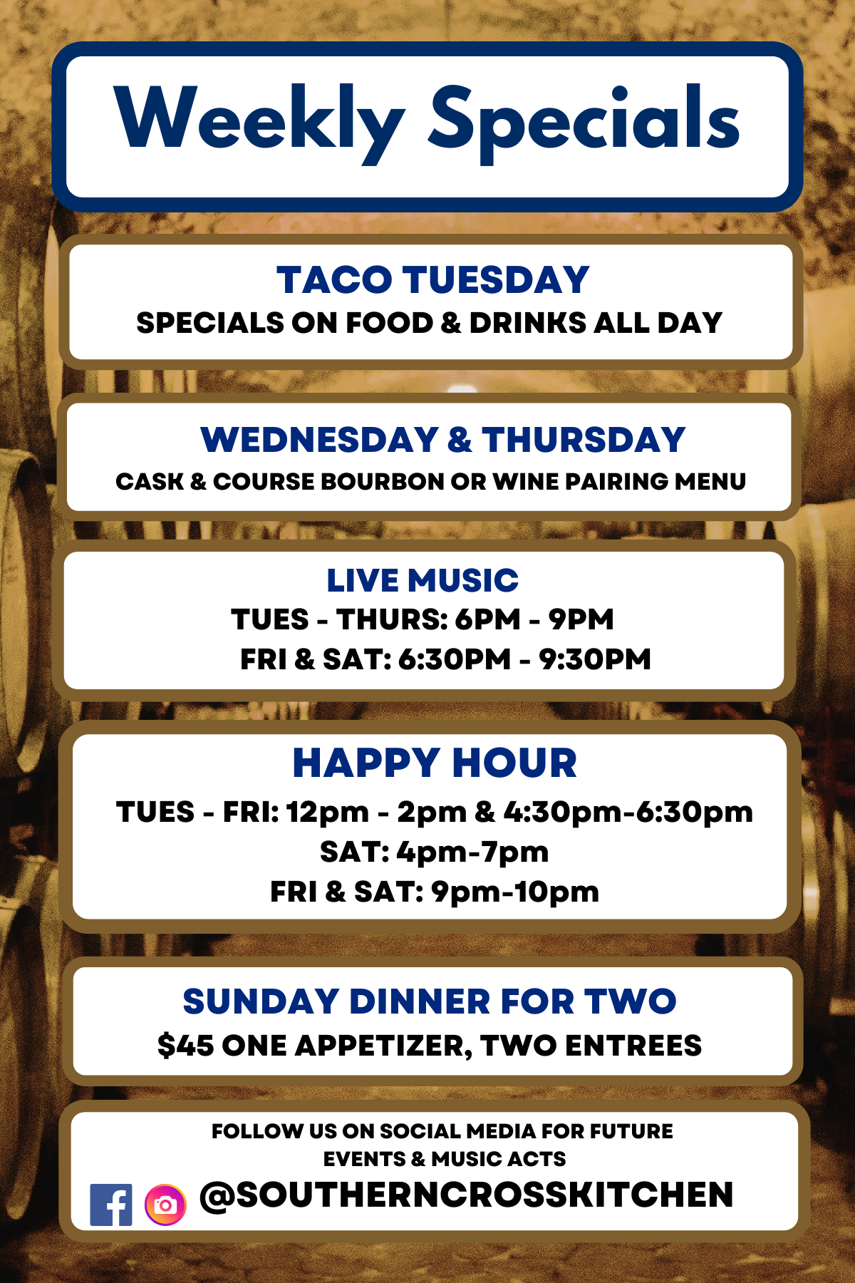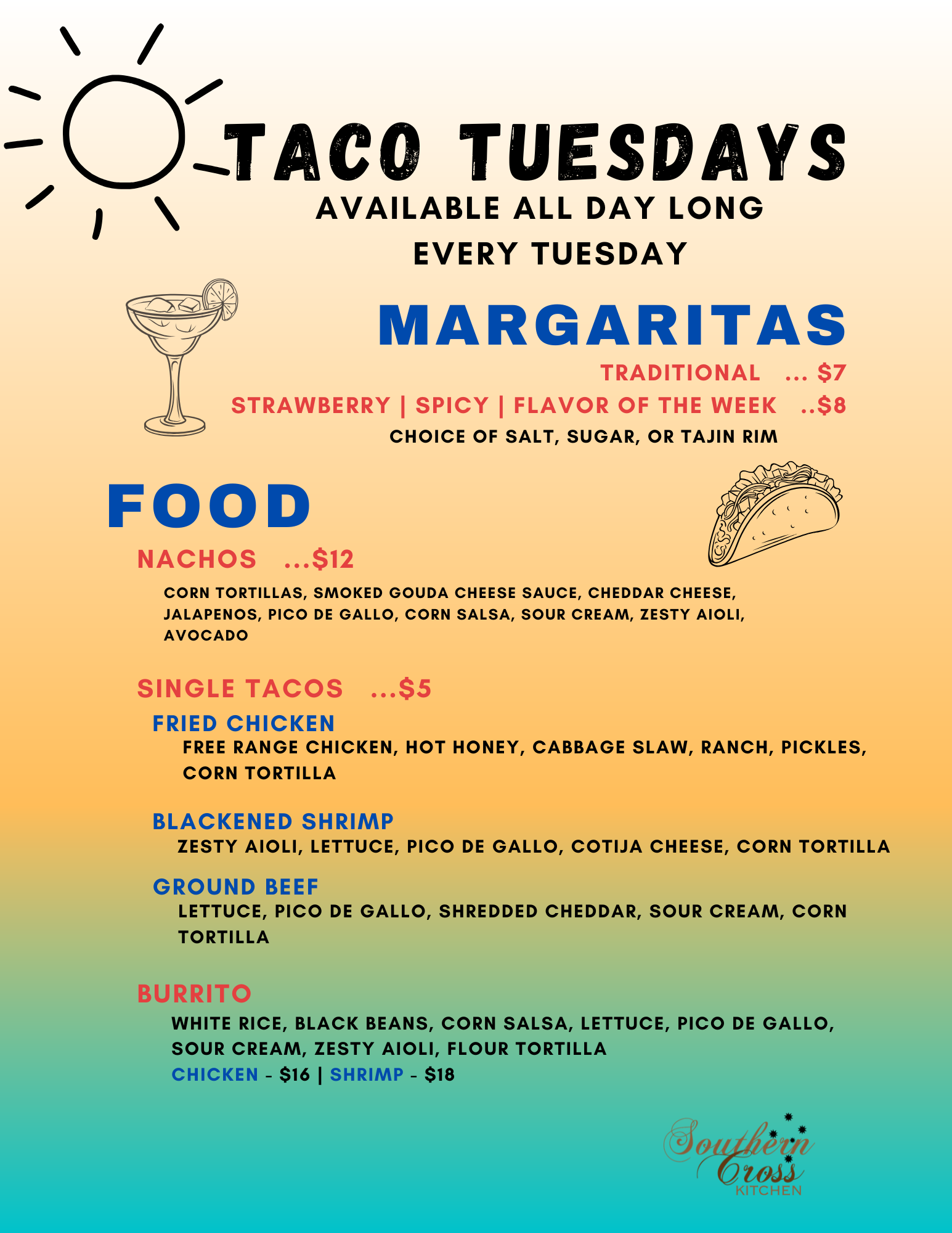 Taco Specials, Margartia Specials, Other Food Specials!